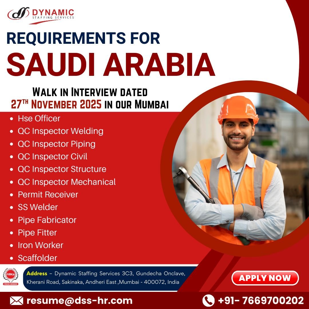 A leading Saudi Arabian company is urgently hiring experienced professionals for long-term Oil & Gas / Construction projects.