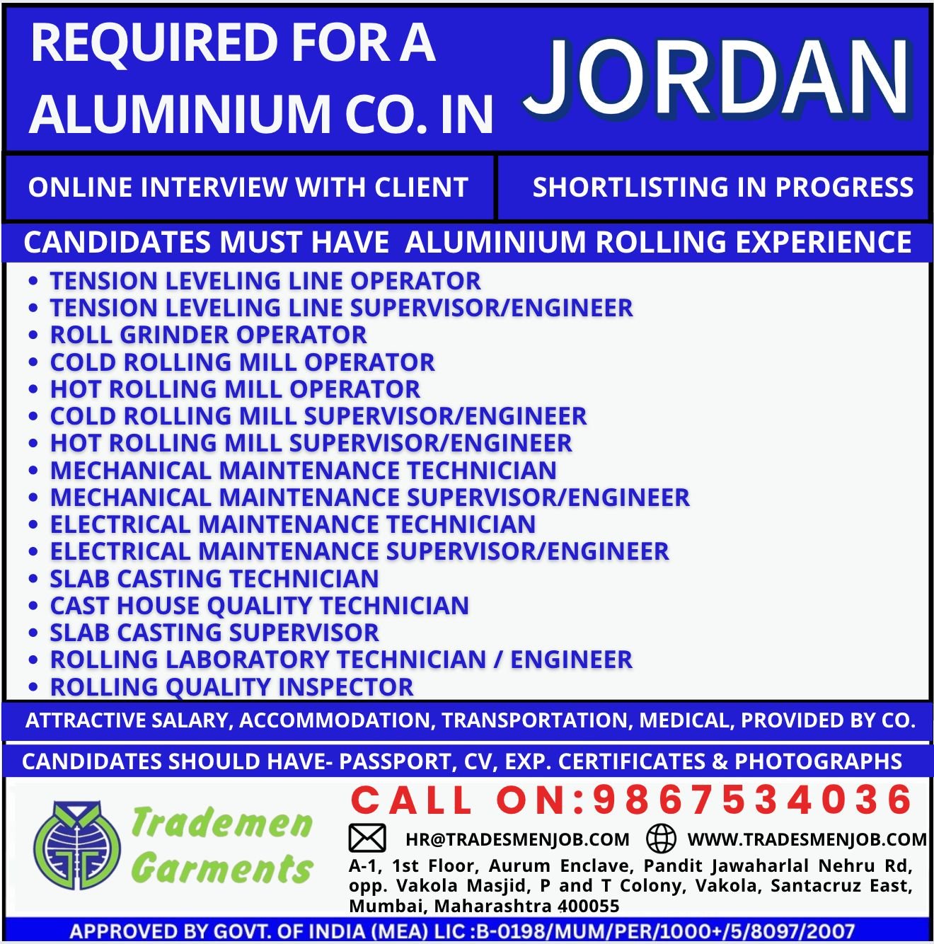 Urgent Hiring For Aluminum Rolling Mill Jobs in Jordan (Online Interviews Now!)