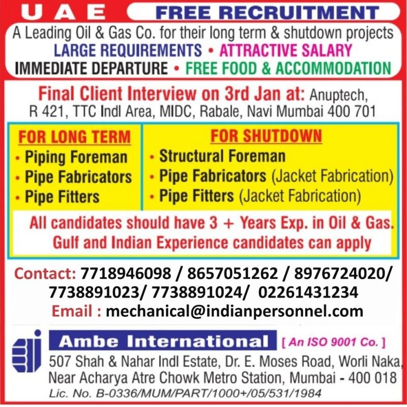 URGENT HIRING FOR OIL & GAS INDUSTRY – SAUDI