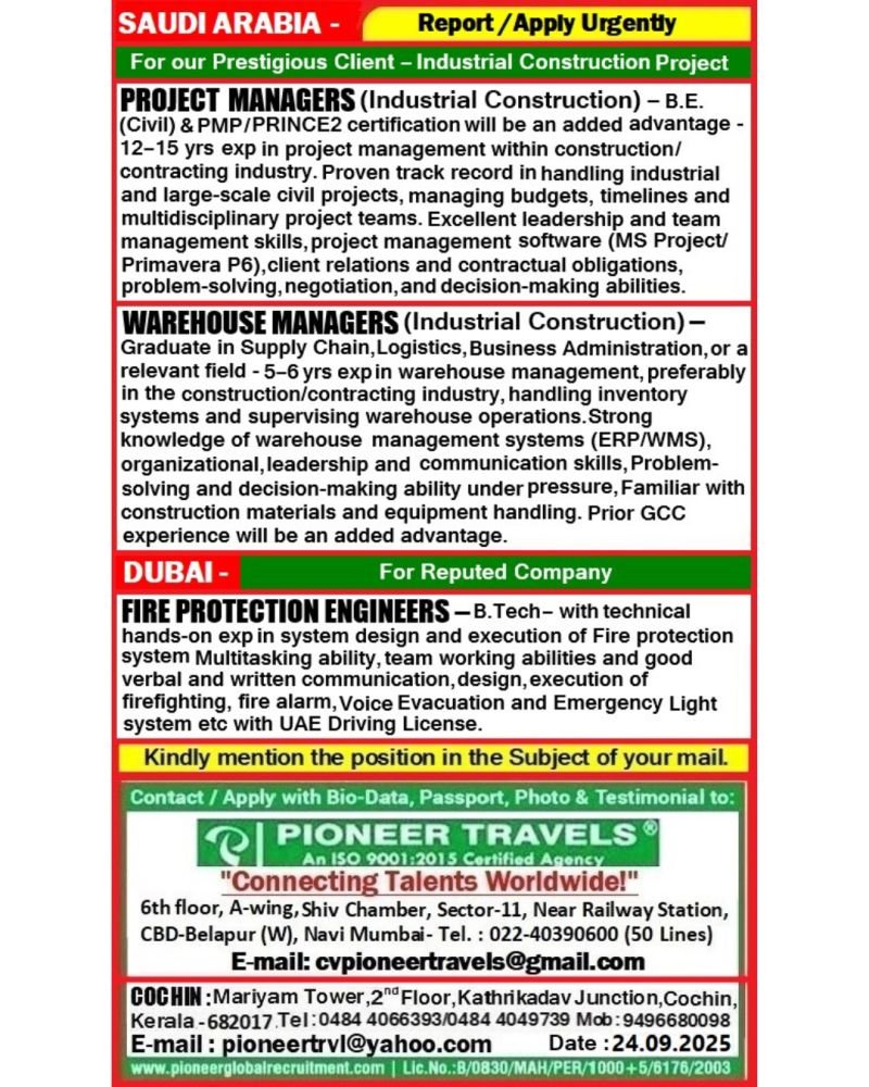 Urgent Hiring For Saudi Arabia & Dubai