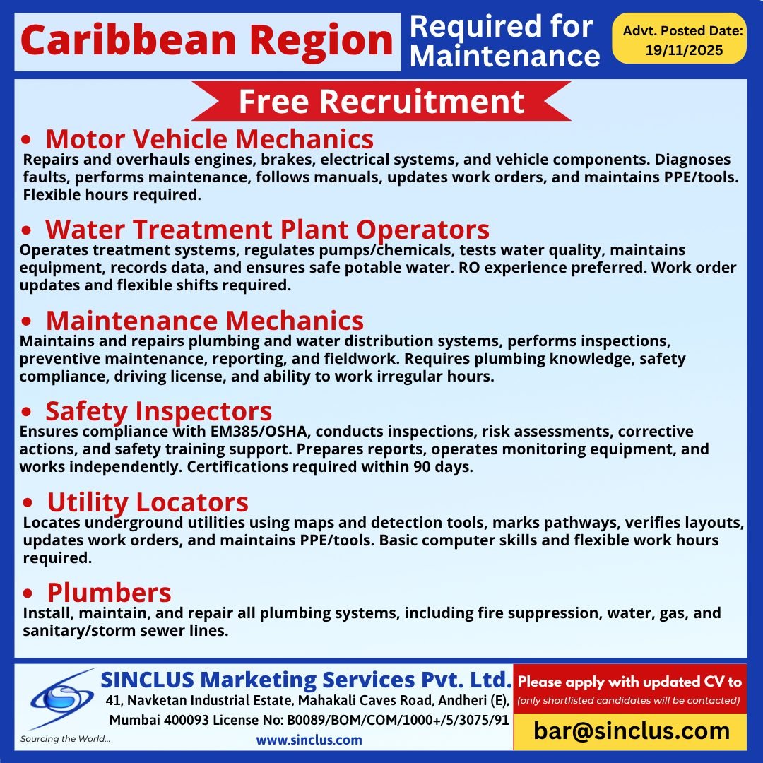 Urgent Hiring: Multiple Maintenance Jobs in Caribbean Region – Free Recruitment 2025