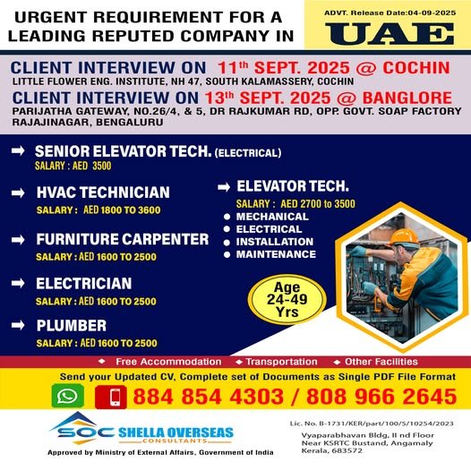 Are you looking for exciting career opportunities in the UAE? A leading reputed company is hiring talented professionals for various roles. Released on 04-09-2025, this is your chance to join a dynamic team. Apply now and kickstart your career abroad!