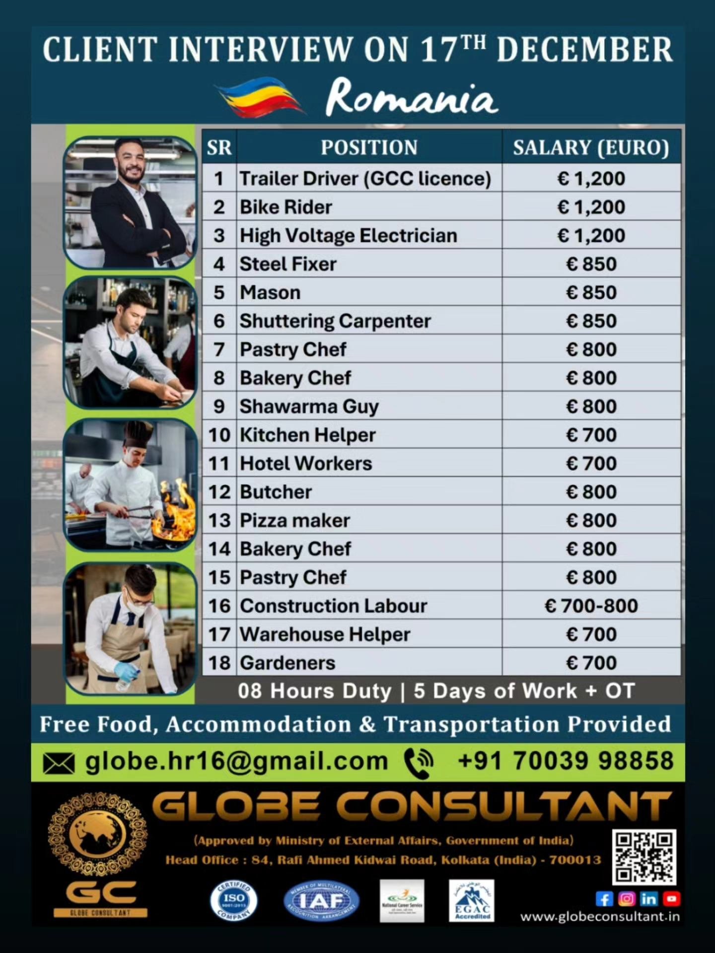 Urgent Jobs in Romania 2025 – Interview on 17th December