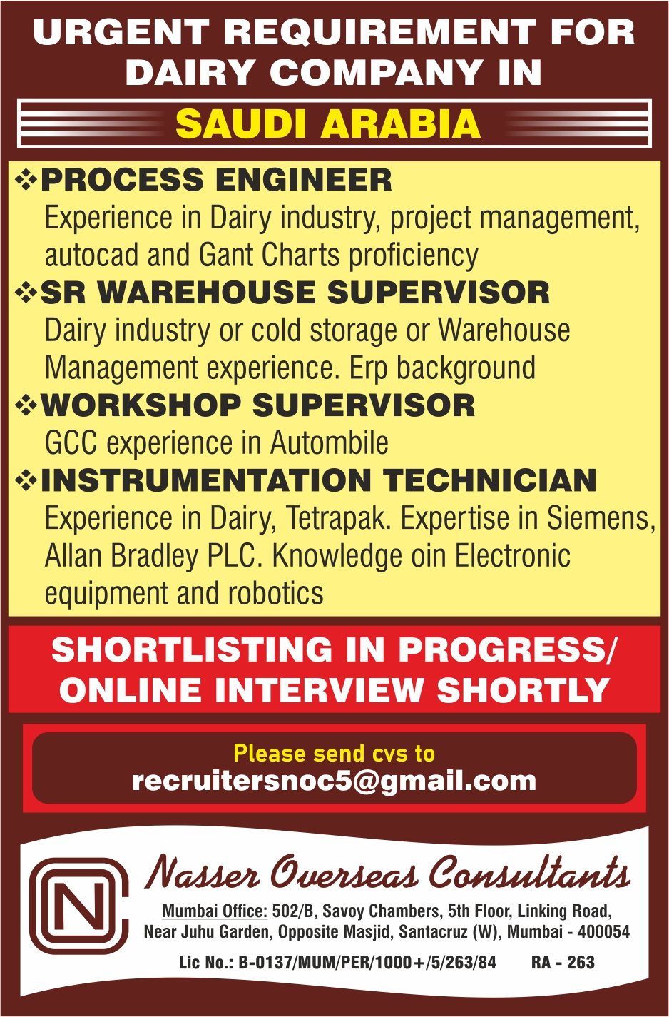 A reputed Dairy Company in Saudi Arabia is urgently looking for experienced professionals. Shortlisting in progress – Online Client Interview very soon!
