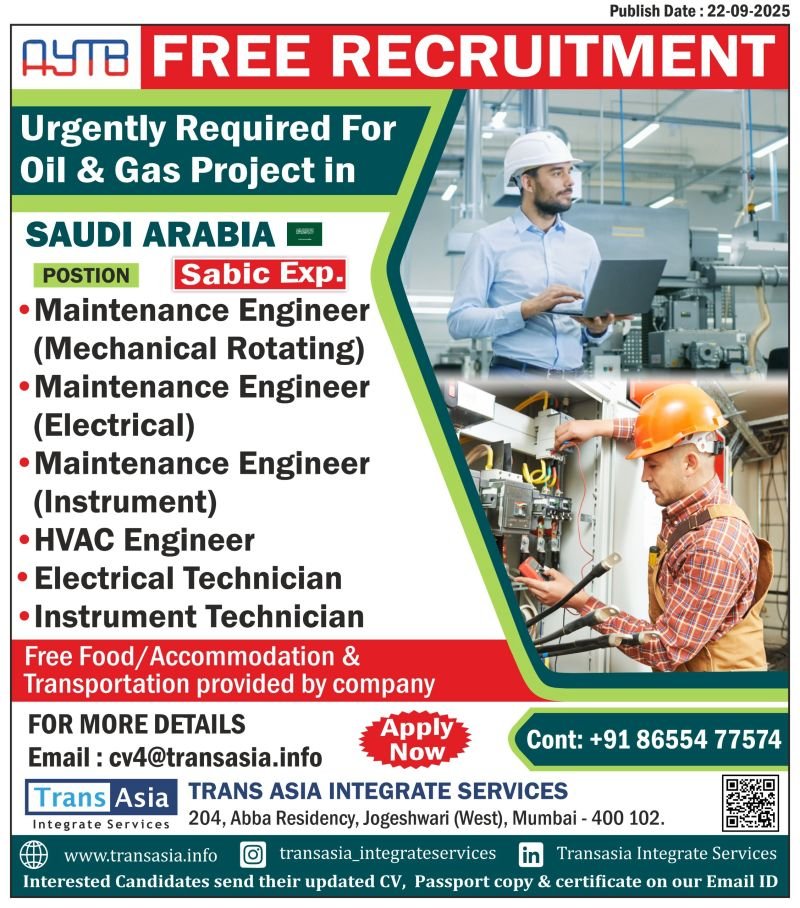 Explore lucrative job opportunities in Saudi Arabia with an Oil & Gas project by Sabic. Trans Asia Integrate Services is hiring skilled professionals—apply today!