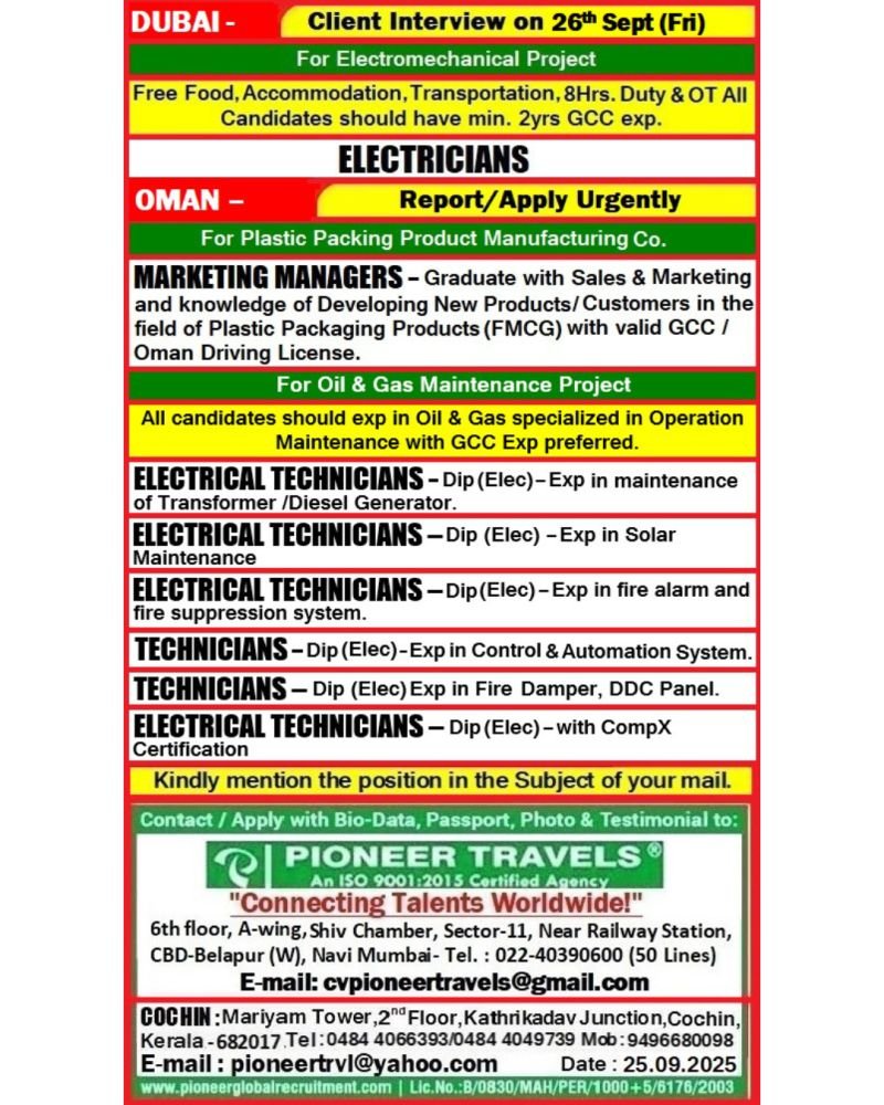 Urgent Recruitment For Dubai & Oman