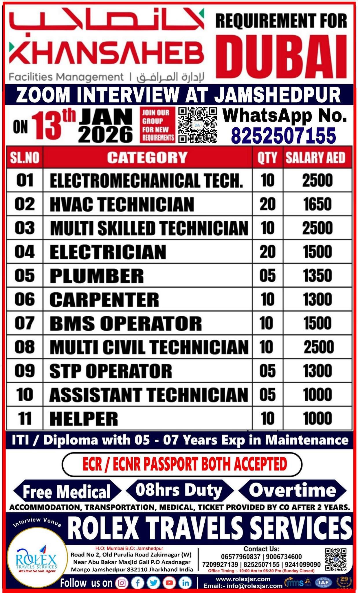 Urgent Requirement: Facilities Management Jobs in Dubai for Khansaheb – Zoom Interview on 13th January 2026
