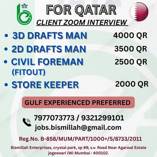 Urgently required for leading company in Doha, Qatar