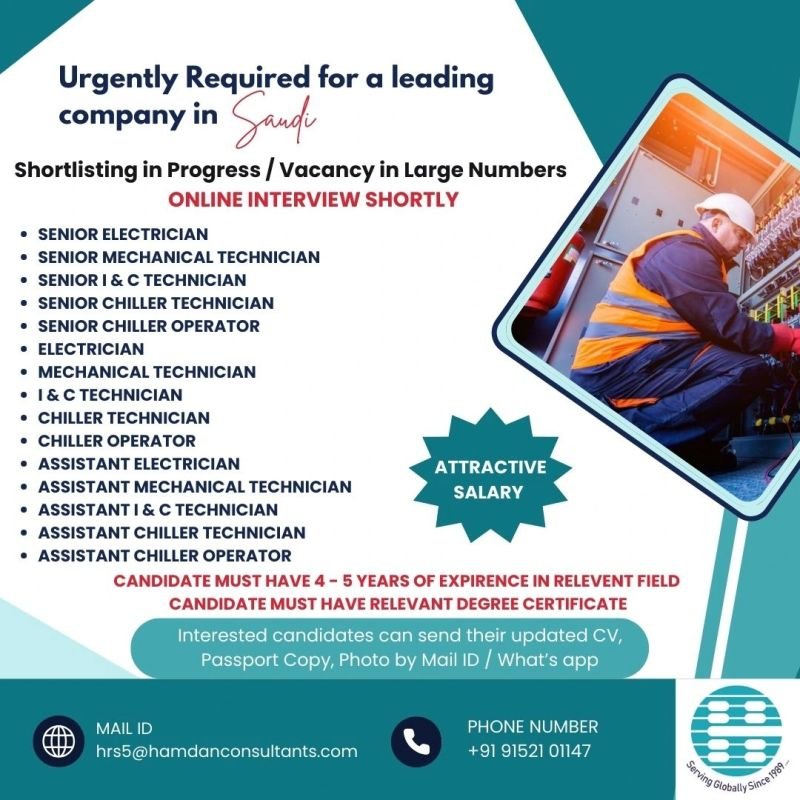 Are you an experienced professional looking for exciting career opportunities? A leading company in Saudi Arabia is hiring for multiple roles with vacancies in large numbers. Shortlisting is in progress, and online interviews are scheduled shortly. Apply now to secure your position!