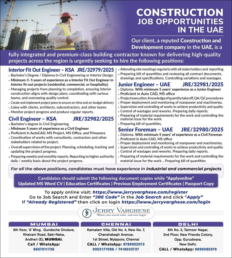 Read the ad to know more about the vacancies and the qualifications / Experience reqd. | Read the Ad carefully before you apply